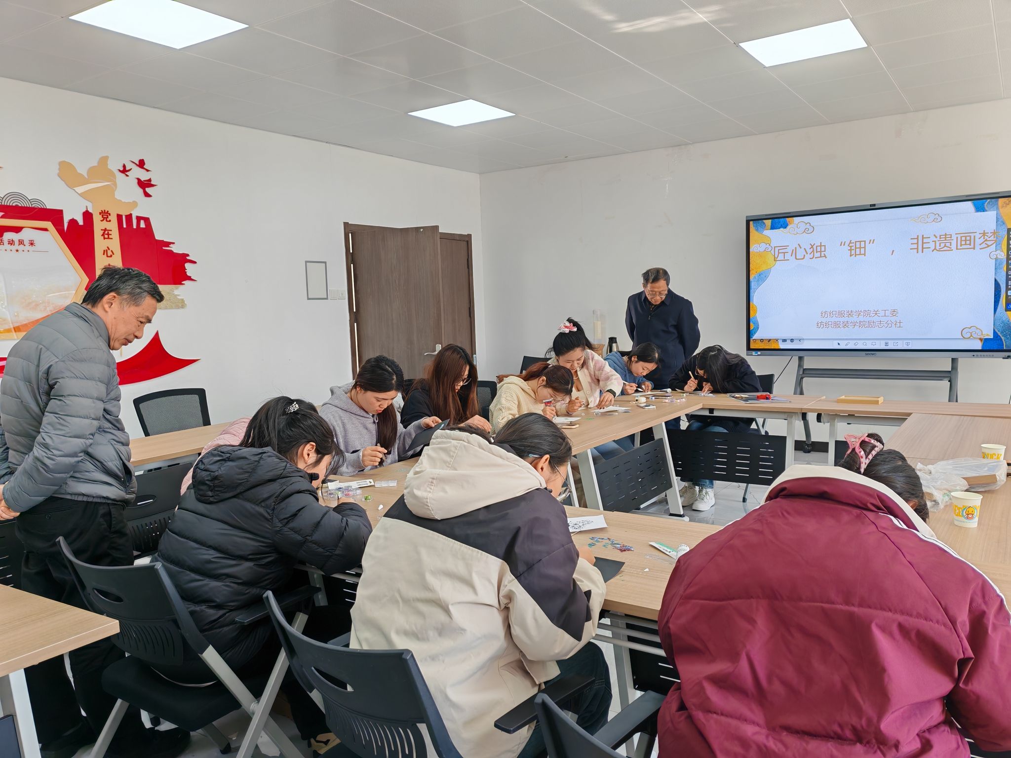 3月19日下午,纺织服装学院关工委“励志成长”工作坊携手学院励志分社在党建多功能室开展“匠心独‘钿’,非遗画梦”主题活动。学院关工委常务主任杨晓红、关工委副秘书长陆锦明以及师生代表20余人参加了此次活动。