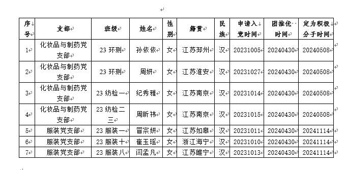经支部委员会讨论并报党总支同意,拟于近期召开支部大会,讨论接收孙依依等7位同志为中共预备党员。现将上述同志的基本情况予以公示,敬请党员、群众监督,如有意见和建议请于12月12日前向纺织服装学院党总支或党委组织部反映。