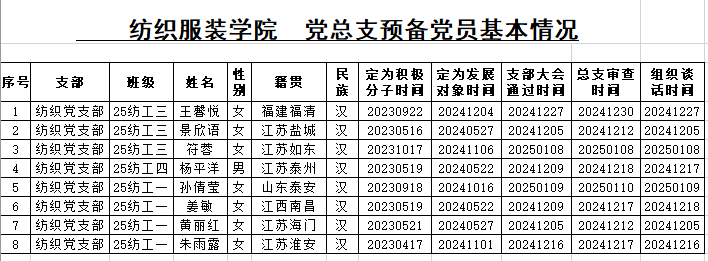 附:纺织服装学院党总支预备党员基本情况