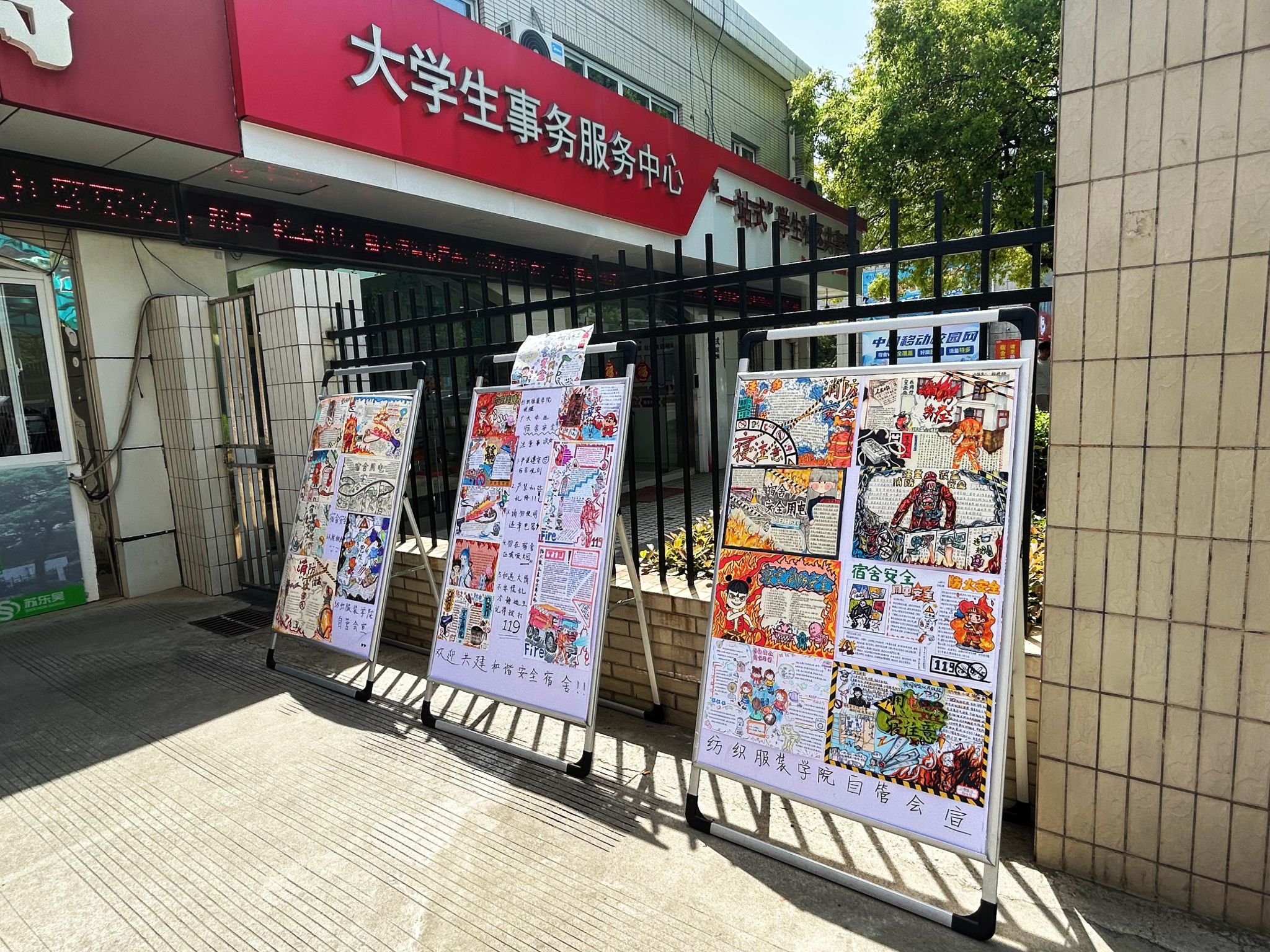 4月16日-4月21日,纺织服装学院挑选了部分手抄报优秀作品分别于崇川校区大生社区和广生社区进行了公开展示,吸引了众多学生驻足观赏,在美化社区环境的同时也在无形中增强了学生的社区安全意识。