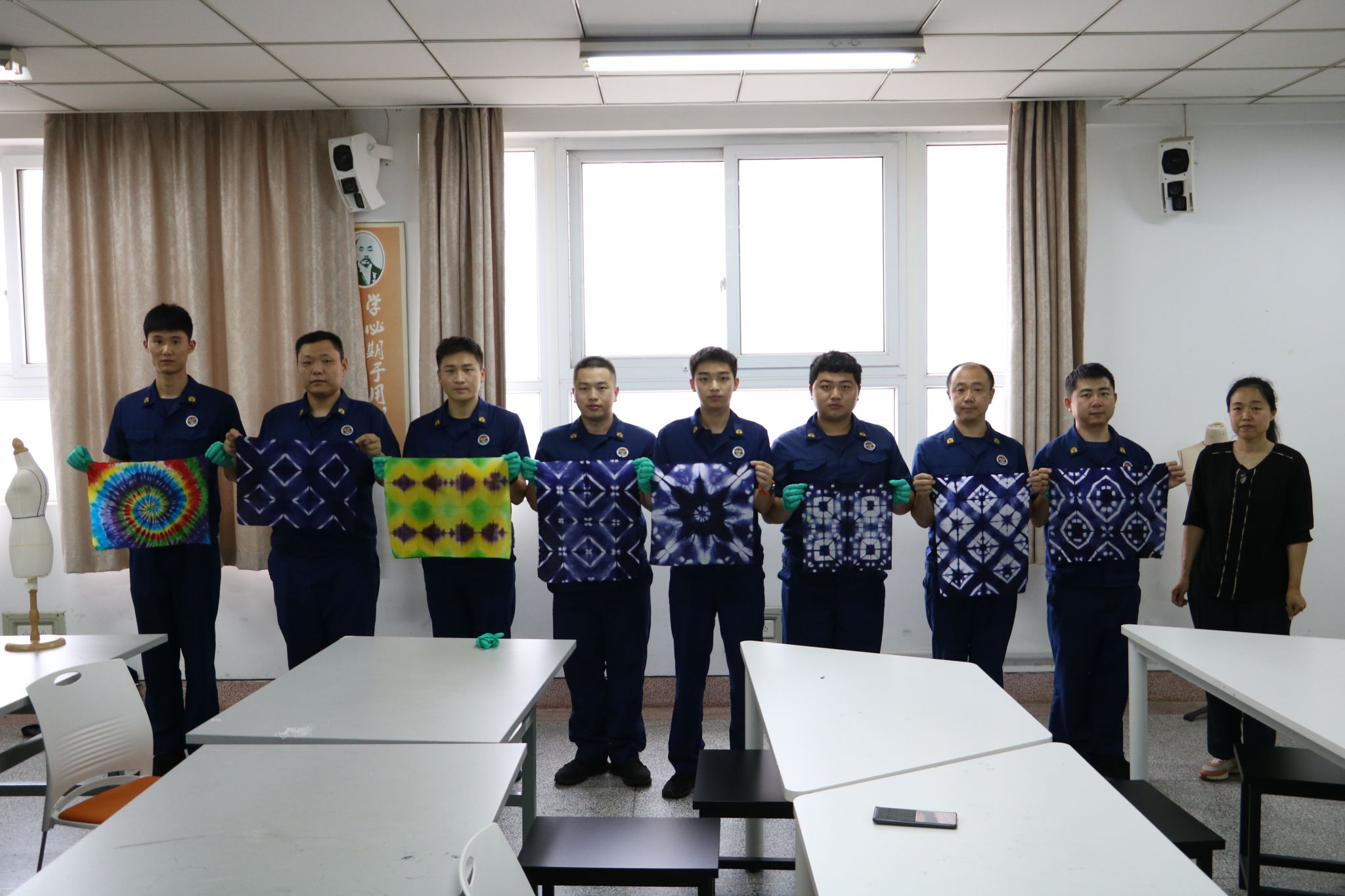 活动首站以“非遗扎染体验”拉开序幕。纺织服装学院专业教师季媛携手学田消防救援站队员,在扎染工坊展开了一场文化与安全的对话。季媛手把手指导消防队员体验扎染技艺。消防队员结合扎染工艺中的“火候控制”“燃料存放”等细节,现场讲解纺织类实验室及手工作坊的消防隐患排查要点。这种跨界互动不仅让非遗文化“活”起来,更让消防安全意识在潜移默化中深入人心。