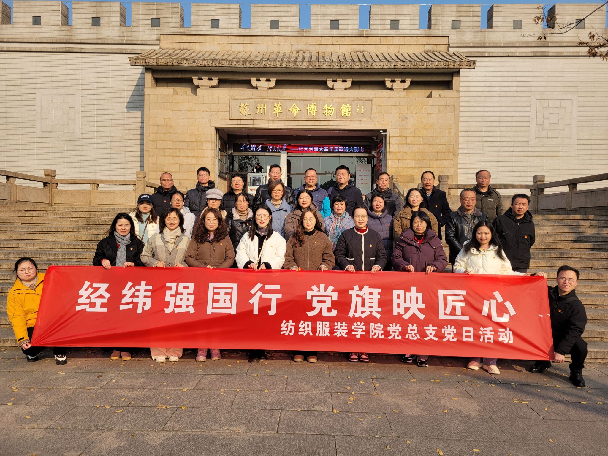 12月21日至22日,纺织服装学院党总支组织全体党员和入党积极分子赴苏州开展“经纬强国行 党旗映匠心”主题党日活动。