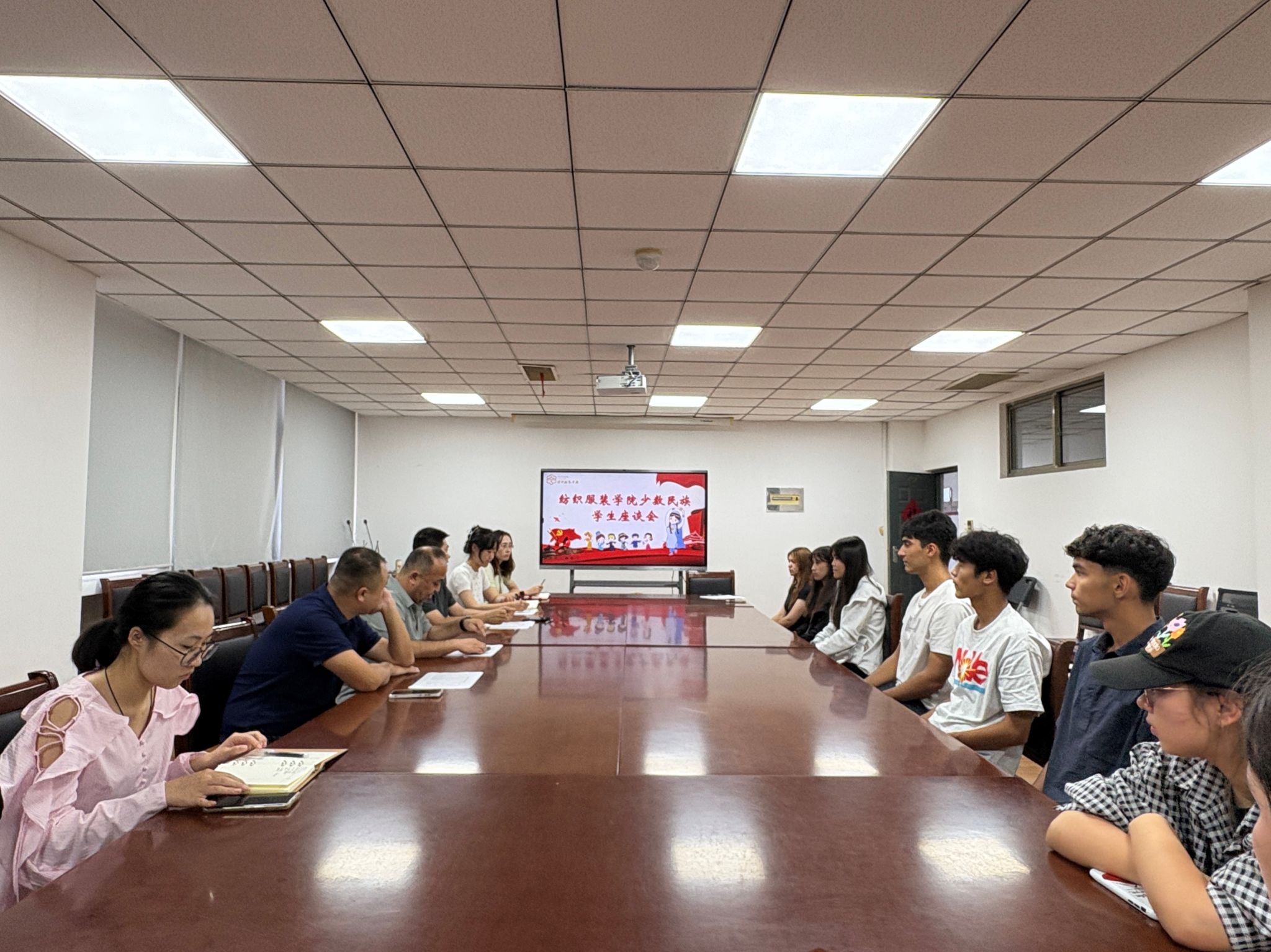 10月10日中午,纺织服装学院在强毅楼604会议室召开了新学期少数民族学生座谈会。学院党总支副书记刘桂阳、新疆内派教师艾比不拉·塞买提、曾帆捷、相关班主任及24级、25级维吾尔族学生共同参会,会议由民族生管理辅导员刘雅楠主持。