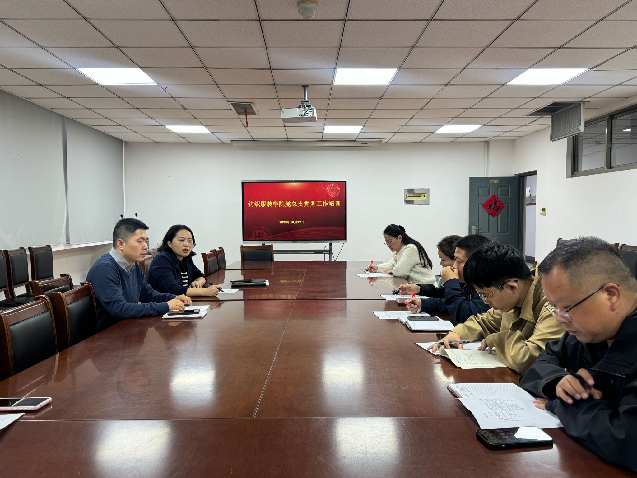 10月22日下午,纺织服装学院党总支在强毅楼604会议室开展党务工作专题培训,学院全体党总支委员、各党支部委员、24、25级部分班主任参训,培训由学院党总支书记夏爱萍主持。