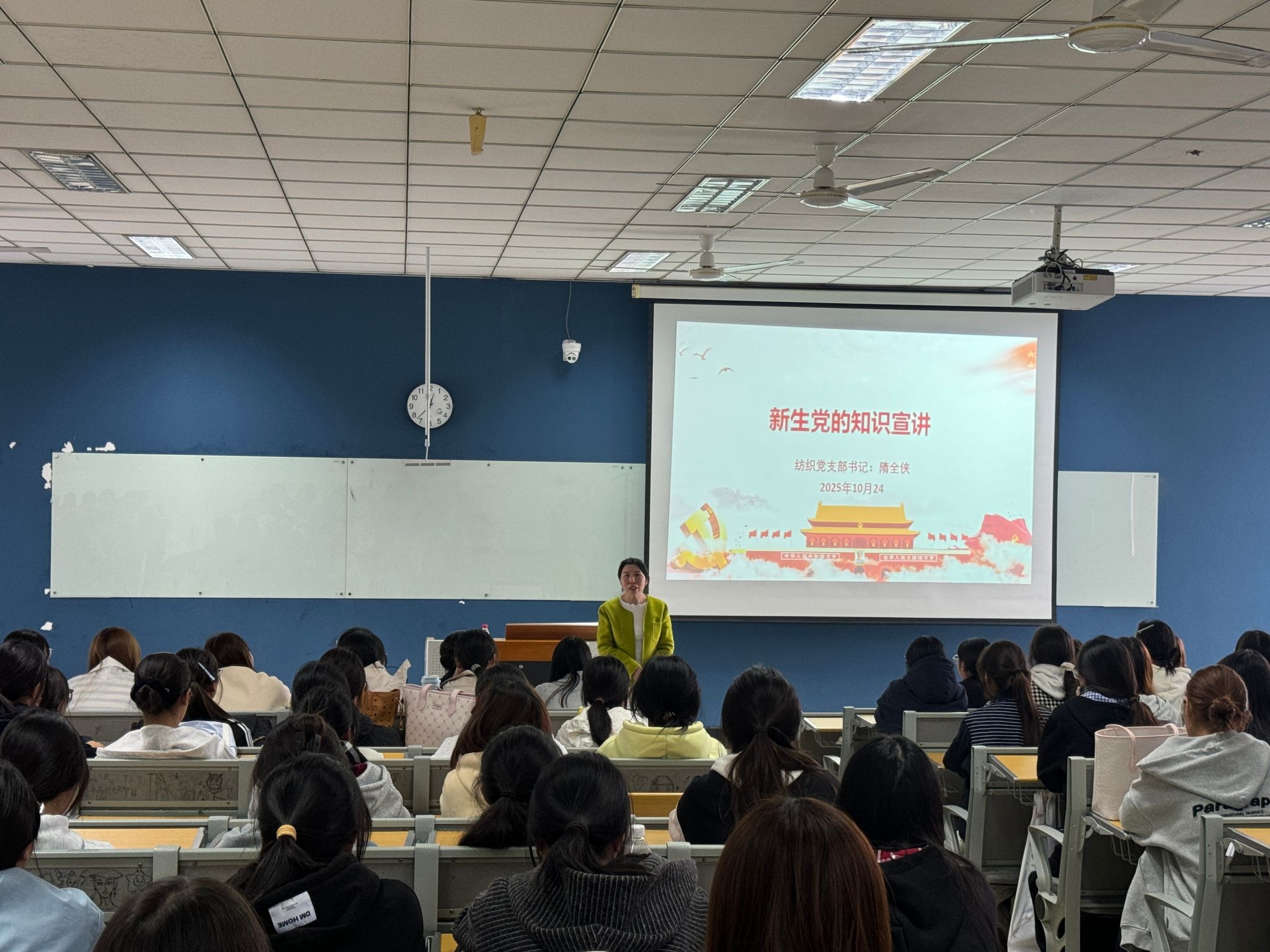活动中,夏爱萍以“学党史 悟初心”为主题,围绕“为什么入党”“加入中国共产党需要什么条件”“怎么加入中国共产党”等三个问题,为新生团员讲授新生入党启蒙第一课。隋全侠为新生开展党的知识宣讲,通过领学党章、讲述党史、播放党课微视频等形式,让理论宣讲更具感染力。授课过程中,她现场指导新生团员撰写入党申请书,解答新生关于入党流程、考察要求等疑问。